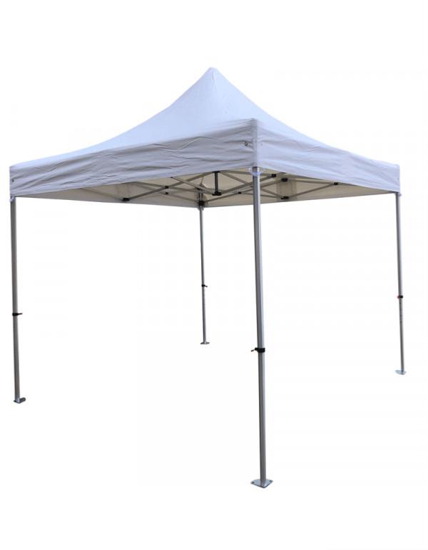 2. Entoilage : : Confection en tissu polyester enduit de 350gr/m2 classé au feu M2, coloris blanc. Assemblage toiture/armature par velcro et assemblage murs/toiture par velcro